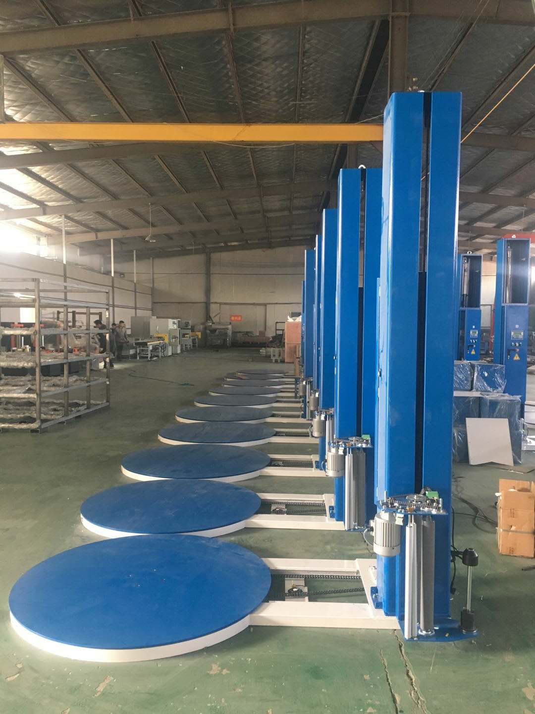 再者、要確定您要包裝貨物的高度,一般自動托盤纏繞機在立柱上都有高位和地位之分。低位一般在2米,如果您要包裝的貨物不高于這個高度,就可以選擇這個低位自動托盤纏繞包裝機;如果您的貨物在2米以上就需要選擇高位自動托盤纏繞機。所以咱們雙方一定要溝通好,選擇合適的自動托盤纏繞機。