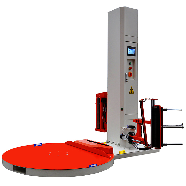 托盤纏繞機(jī)是指通過轉(zhuǎn)臺旋轉(zhuǎn)帶動(dòng)托盤貨物轉(zhuǎn)動(dòng),進(jìn)而實(shí)現(xiàn)對貨物纏繞裹包的設(shè)備。適用于使用托盤裝運(yùn)的貨物包裝(如用于大宗貨物的集裝箱運(yùn)輸及散件托盤的包裝等),廣泛應(yīng)用于玻璃制品、五金工具、電子電器、造紙、陶瓷、化工、食品、飲料、建材等行業(yè)。能夠提高物流效率、減少裝運(yùn)過程中的損耗。具有防塵、防潮、降低包裝成本等優(yōu)點(diǎn)。